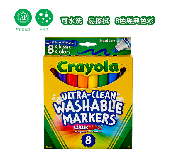 【美國 Crayola】繪兒樂 可水洗粗頭彩色筆經典色8色