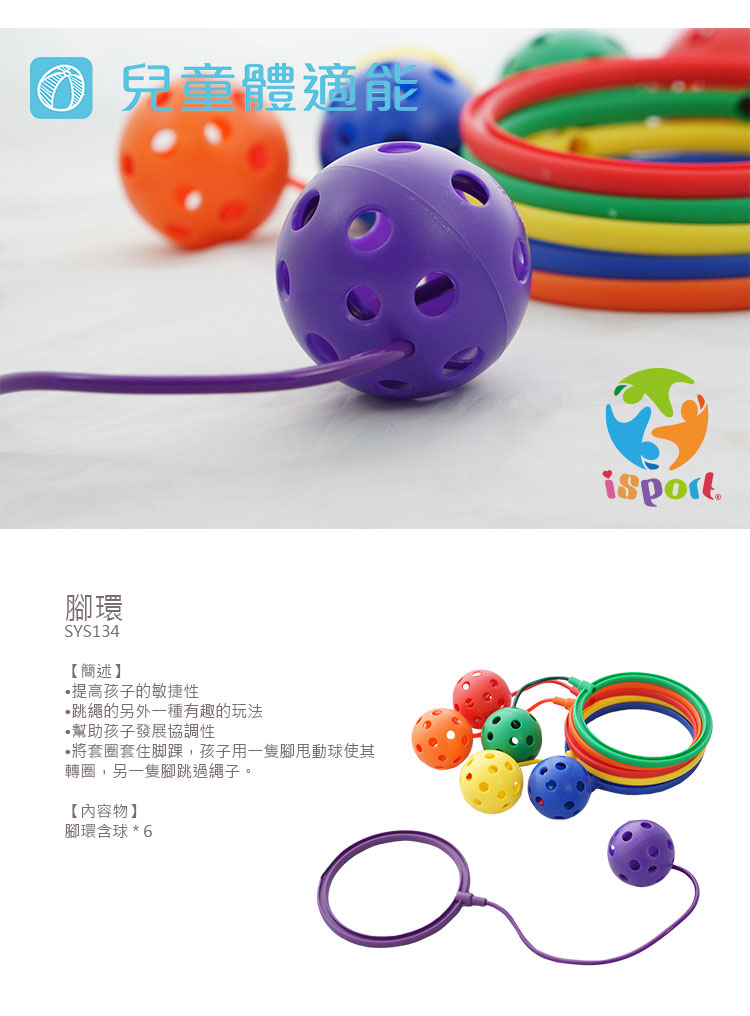 【台灣 isport】體能教具 腳環組(6入)*跳繩遊戲.四肢發展.身體協調.感統教具
