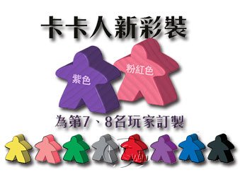 所有擴充版本都可以自由組合使用,而且,此版本提供第7、8名玩家使使用的配件,新增的炫麗色彩讓卡卡頌更顯繽紛。