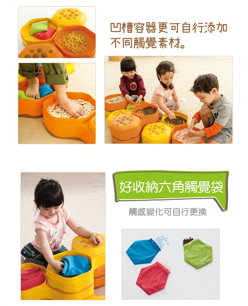 •產品內容|蜂蜜步道6塊、六角觸覺袋3個(空)