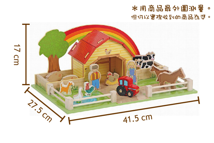 ★ 認識10種動物、2位男女農夫、1台耕耘車,共13個配件。