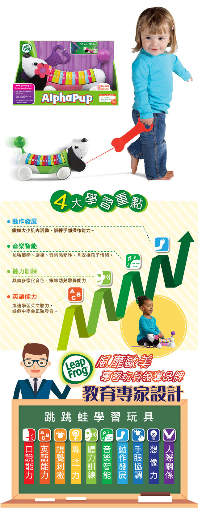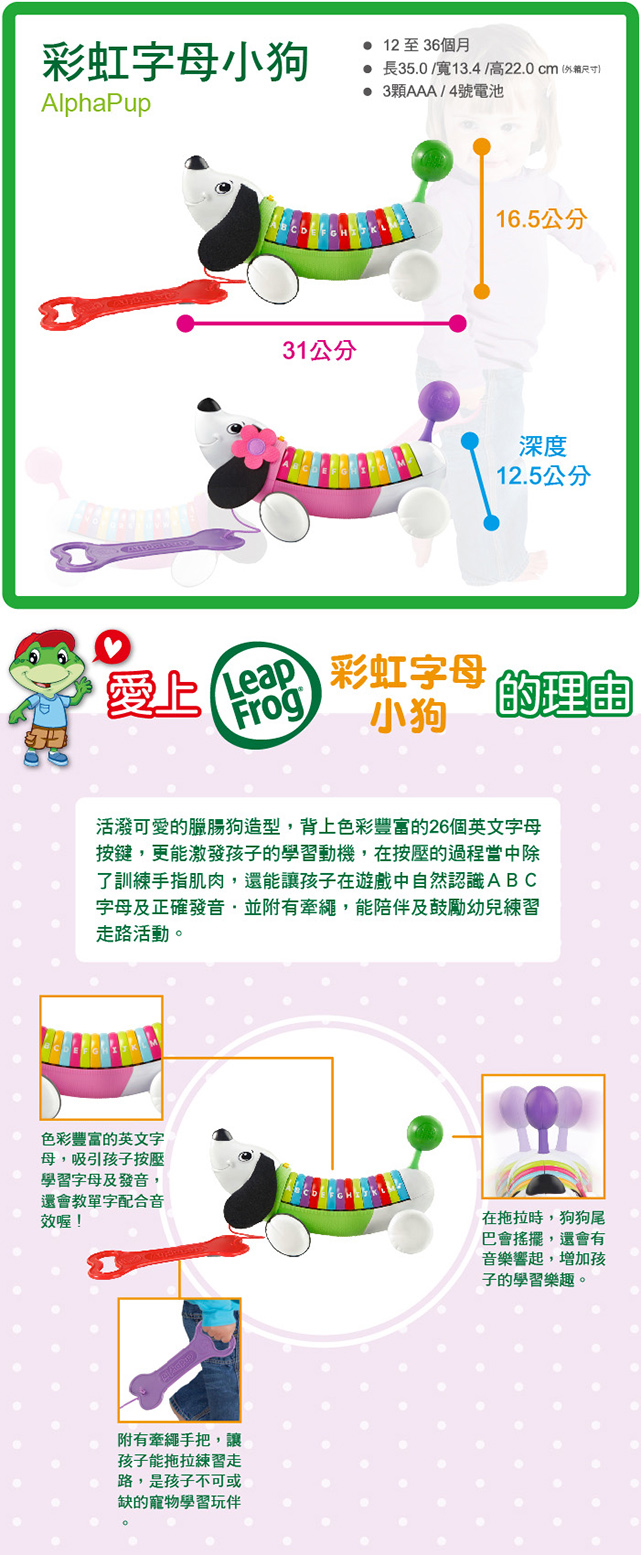 【美國 LeapFrog】跳跳蛙 全英幼兒玩具系列-彩虹字母小狗*認知學習*電子助步玩具