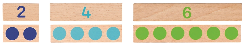 •數數板依長度比例切割,在排列中引導孩子發現數字的大小及排序,也可以作為非標準化的測量工具使用。