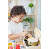 - 讓孩子動手是最好的學習,當孩子一手穩穩的握住木刀,一手扶著木質蔬果,精準切下的那瞬間,便是一次手眼協調的完美配合!繽紛豐富的配件,讓孩子恣意享受扮家家酒的樂趣,激盪小小腦袋瓜裡的想像力吧!