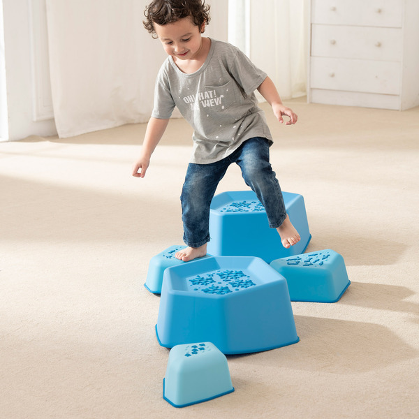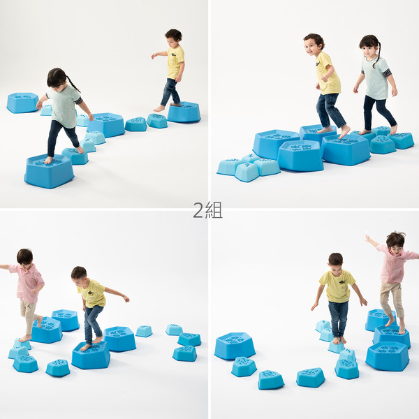 1.三種大小冰塊,每一塊都是不規則的形狀。只要轉個方向,就能改變踩踏面積的寬窄度。