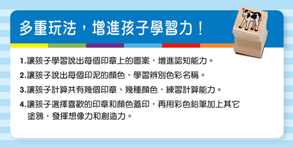 ※ 內容物:雙色印台 x 1、圖章 x 9、色鉛筆 x 5 共15件組