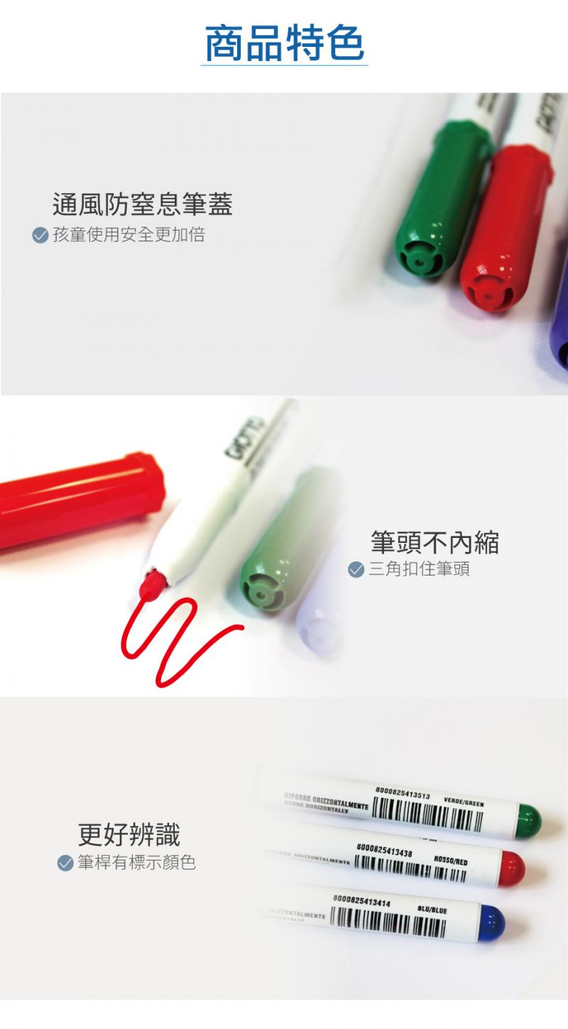 - 義大利製安全白板筆,無刺鼻氣味,使用後可完全清除痕跡!