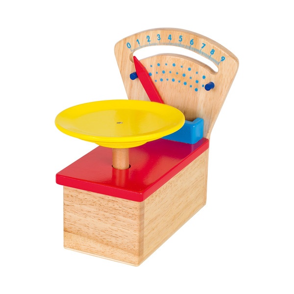 - 堅固木製的磅秤,搭配各種廚房、商店扮演皆適宜,學習基礎的重量測量概念。