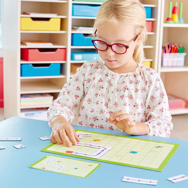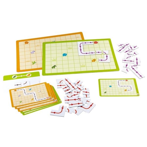 - 磁性底板,搭配直線和彎曲的箭頭,孩子須思考如何創造路徑,讓可愛的動物朋友相遇,提升空間方位和邏輯推理能力。