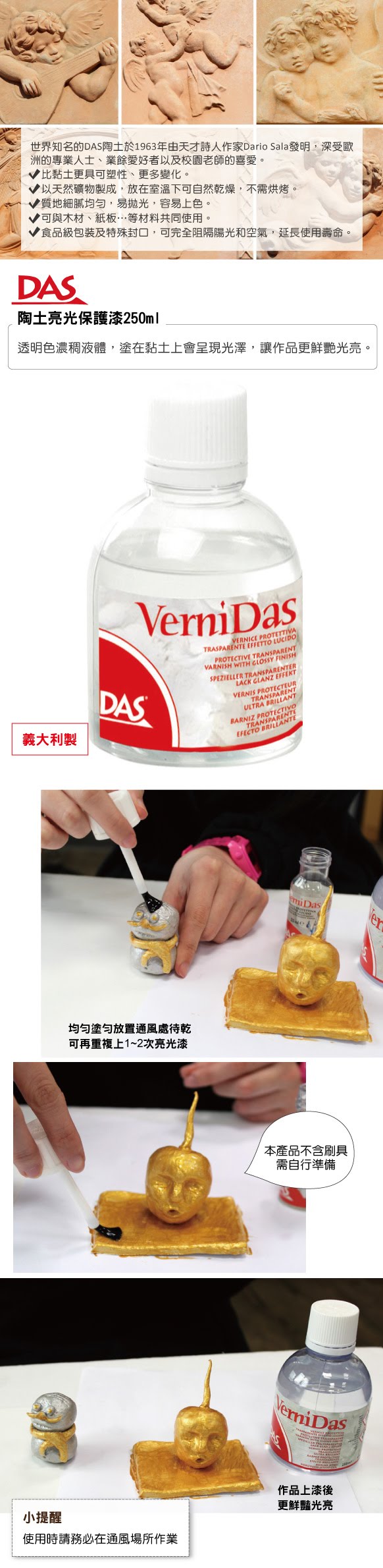 - 透明色濃稠液體,塗在黏土上會呈現光澤,讓作品更鮮艷光亮。