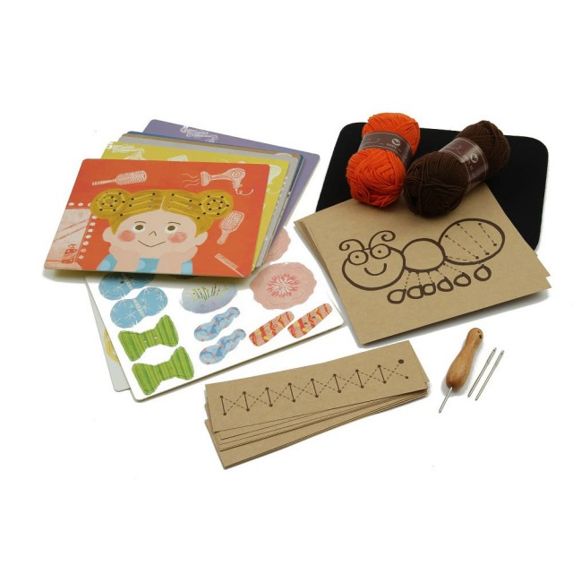 內容物 : 縫工卡35張、小鳥安全刺針1支、刺工墊1張、髮型穿線卡8張、配件卡2張、安全鈍針2支、毛線2捲、說明書1本