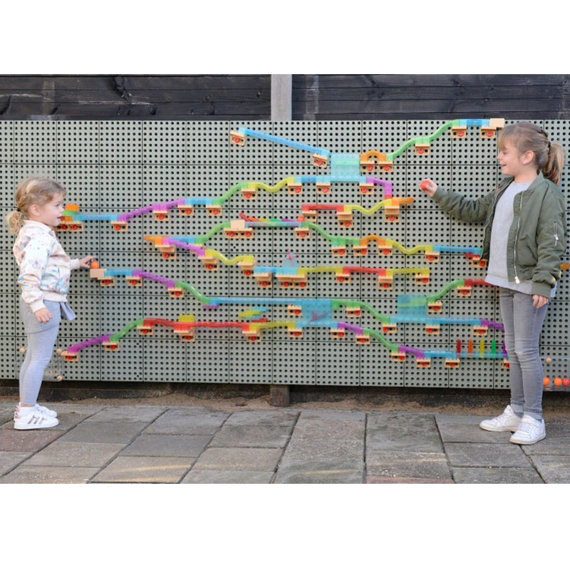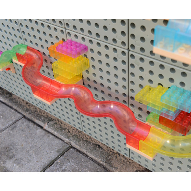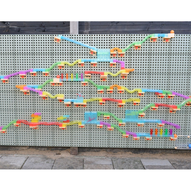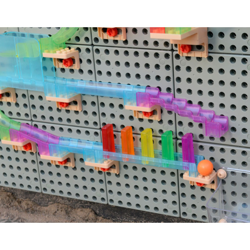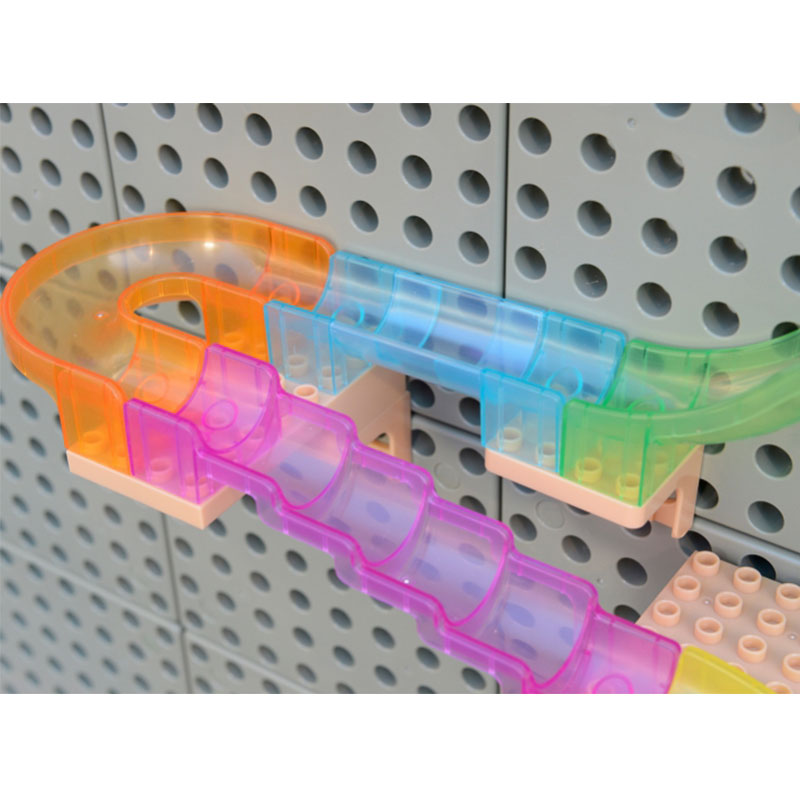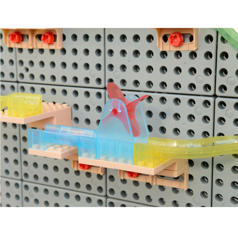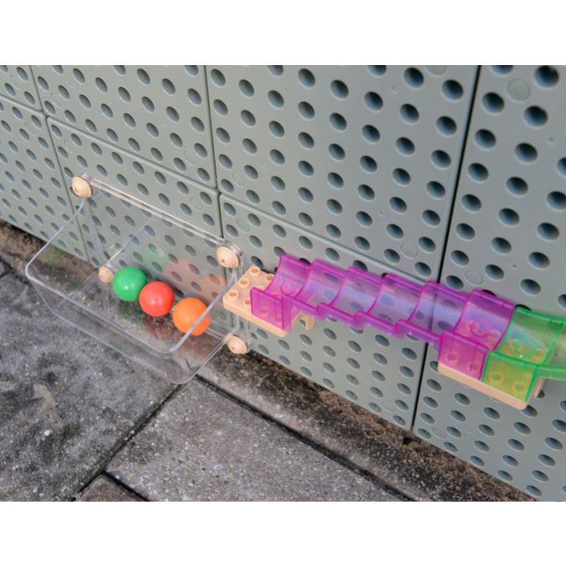 • 每一位小孩都喜歡搭建自己獨有的滑球軌道,他們可以透過自己的軌道設計把球輸送到不同的位置