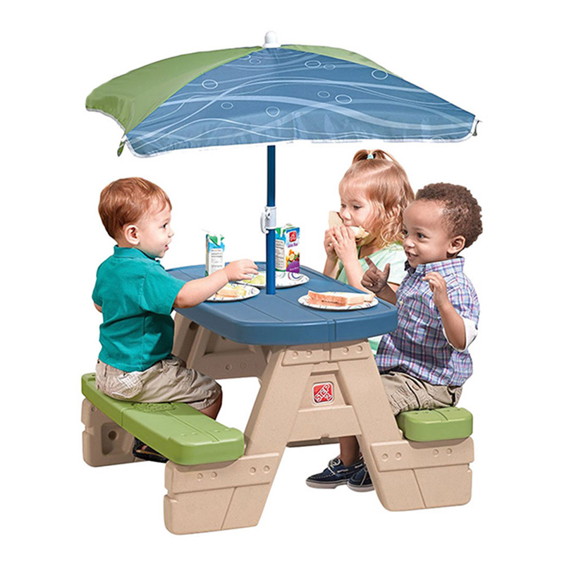 【美國 STEP2】藍色野餐四人桌(含傘)