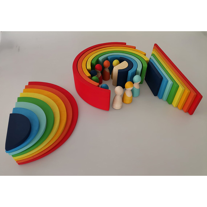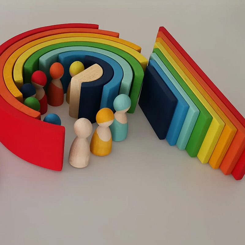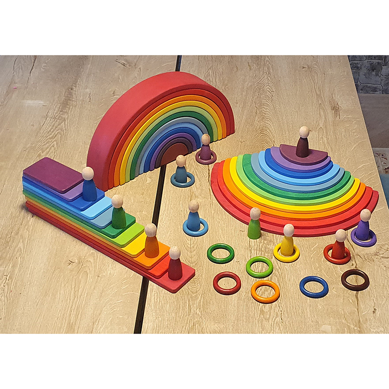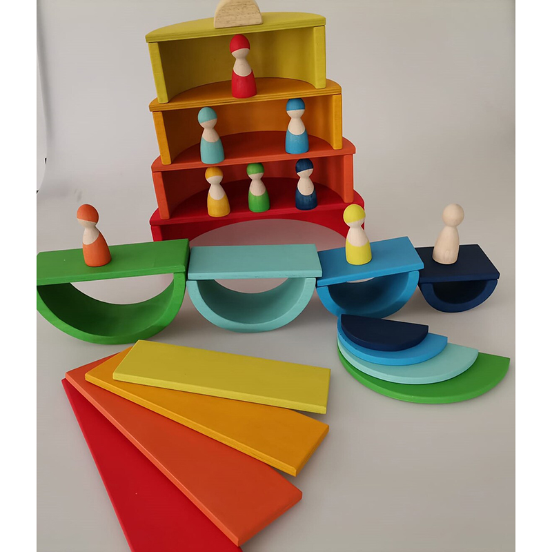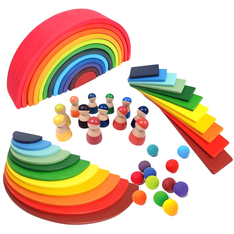 【娃娃國】彩虹積木基礎五件組(大彩虹+半月板+直板+小球+人偶)