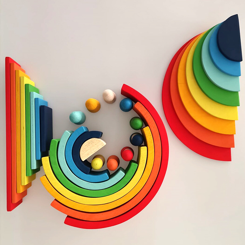 兒童玩彩虹積木可以是沒有標準模式的,開放式地⾃由探索,您也可