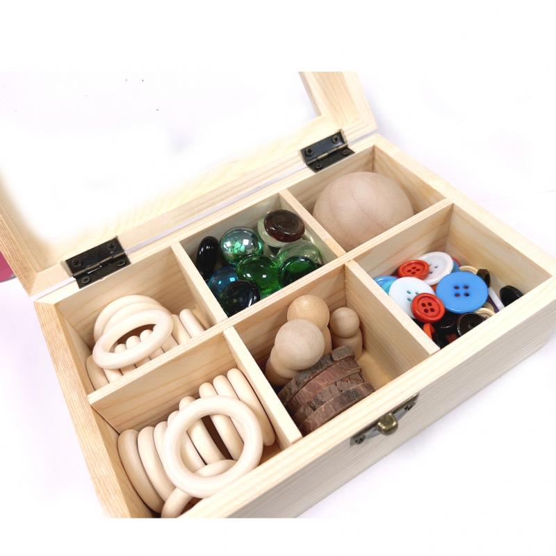 感官探索盒,是一個開放性材料盒,由各類材料組合成,從而在探索中進行練習孩子的創造性及想像力,以及解決問題的能力。