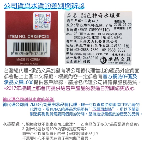【韓國 AMOS】 神奇水蠟筆-12色細款