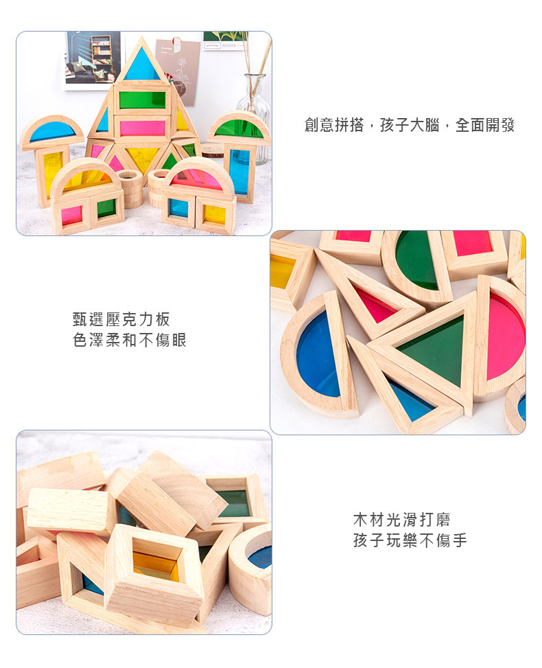 【娃娃國】木製壓克力彩虹積木(24PCS)
