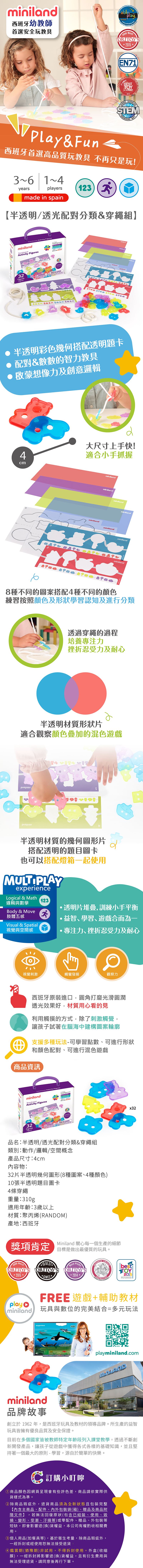 【西班牙 Miniland】半透明/透光配對分類&穿繩組