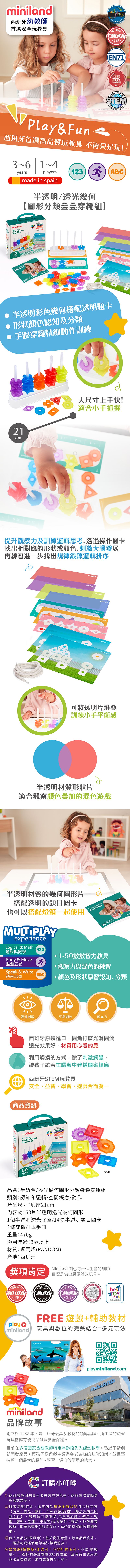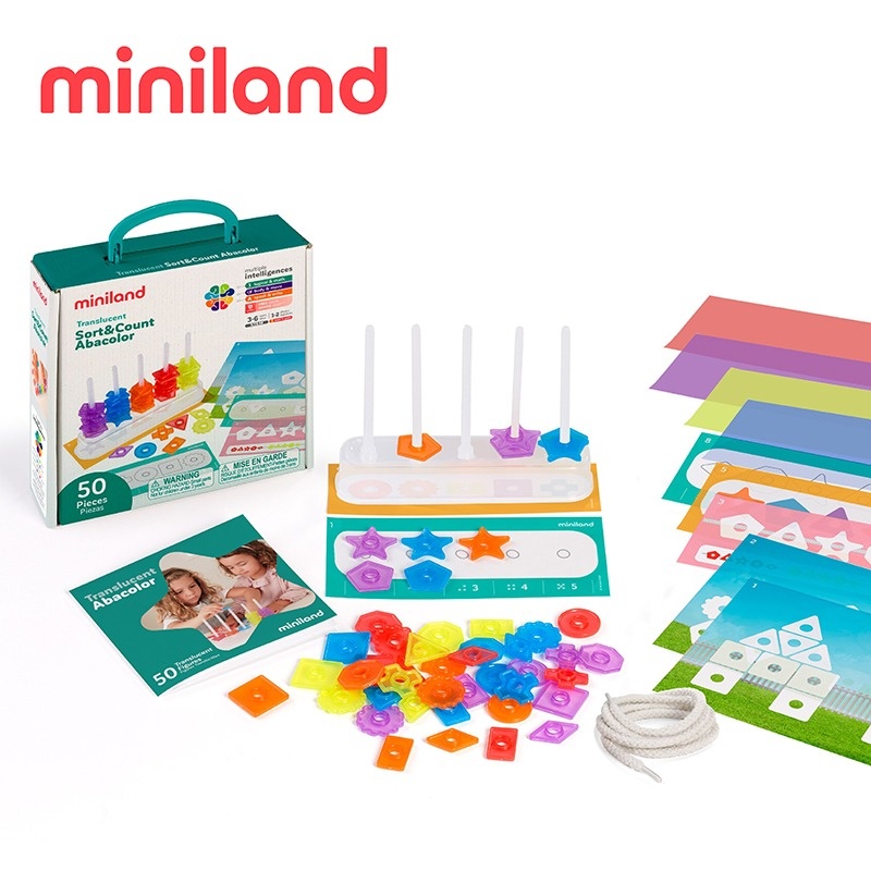 【西班牙 Miniland】半透明/透光幾何圖形分類疊疊穿繩組