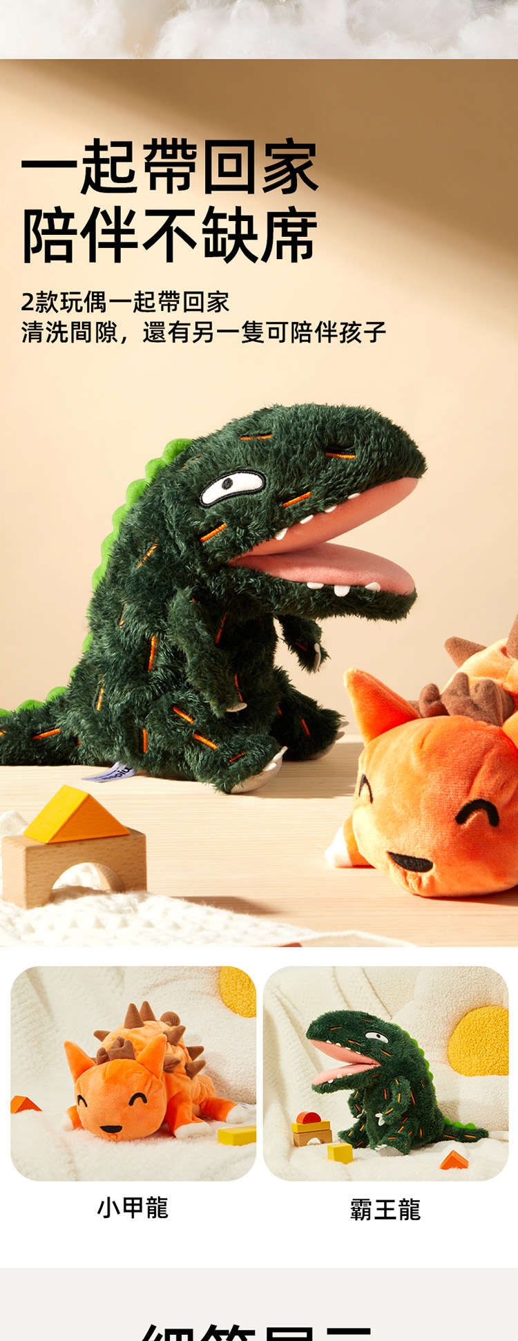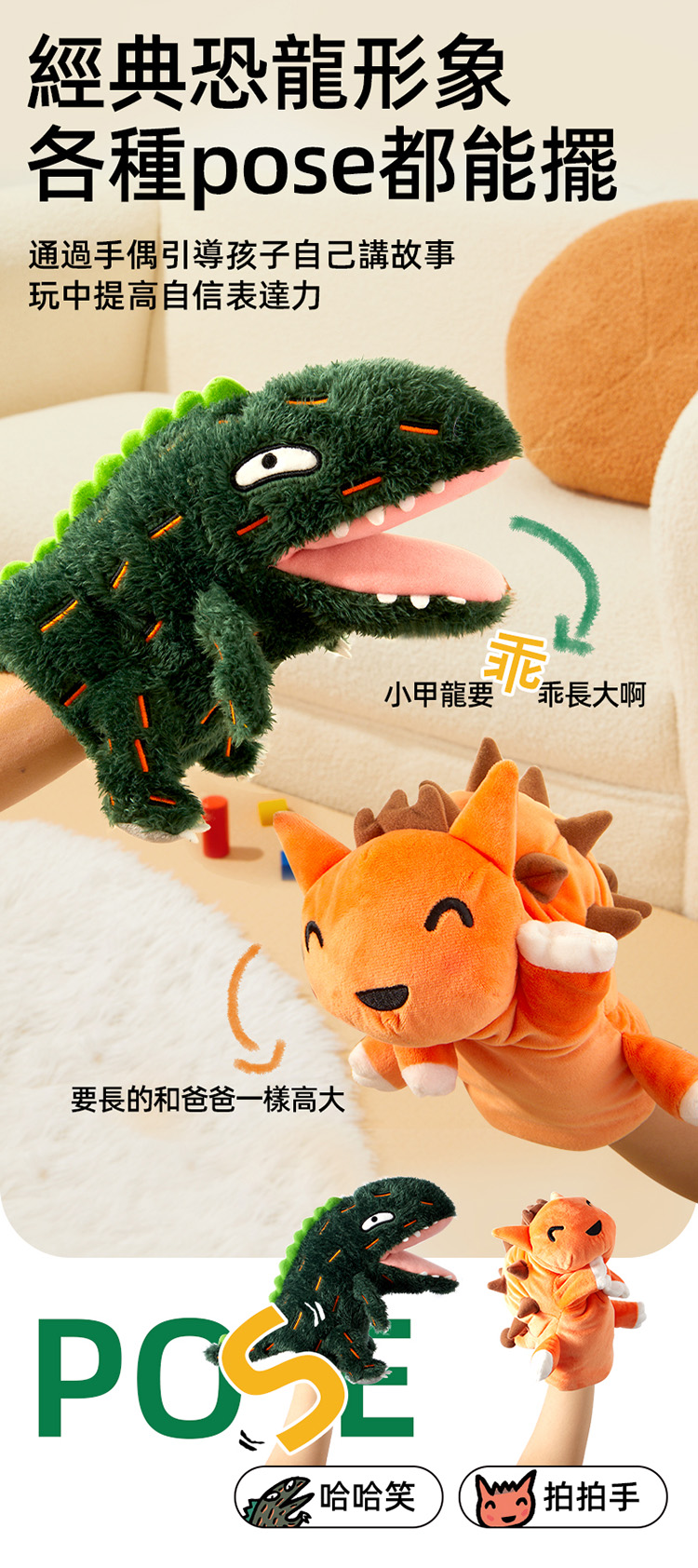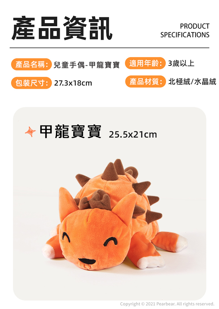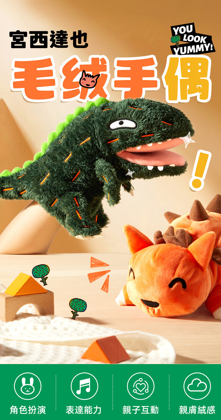 宮西達也藝術聯名款,經典恐龍形象,各種POSE都能擺。透過手偶引導孩子自己講故事,在玩樂中提高自信、表達力。既是手偶也是安撫玩具,自帶安撫技能,陪伴哄睡不哭鬧。優選北極絨和水晶絨,柔軟舒適不掉毛,無螢光親密陪伴更安心。獨特印染工藝,清洗不掉色,3D高彈填充棉,揉捏不易變形。透氣內襯,不易悶汗,多彩刺繡,形象生動,針腳細密,立體縫合。