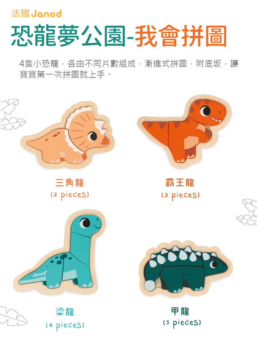 【法國 Janod】 恐龍夢公園-我會拼圖