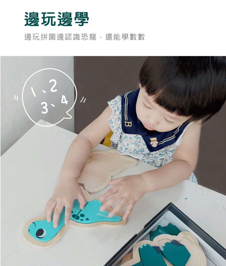 ● 2、3、4和5片拼圖,漸進式增加難度,一步一步累積拼圖經驗