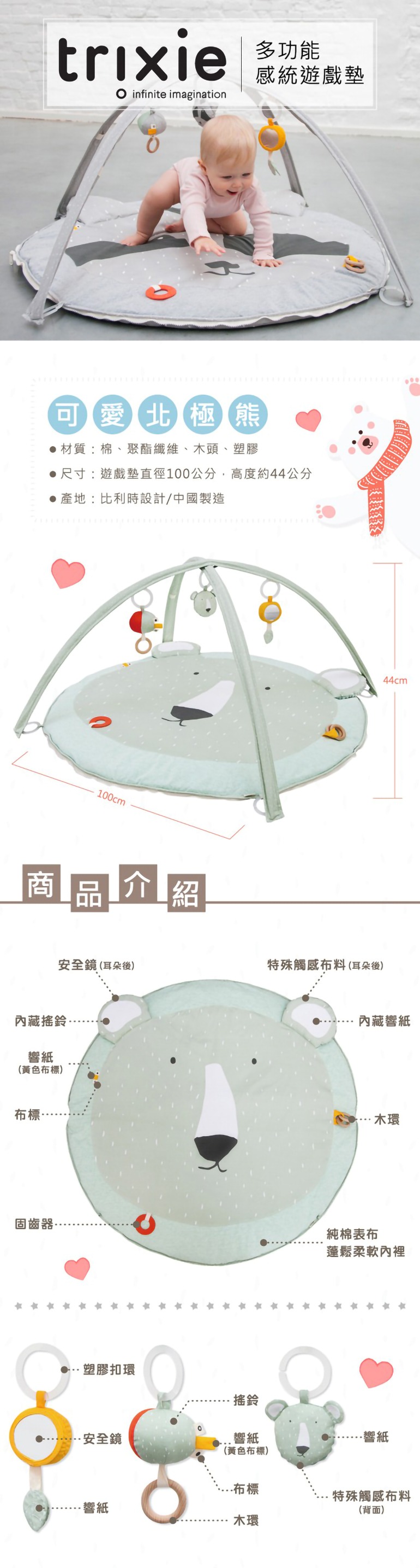 【比利時 Trixie】多功能感統遊戲墊-可愛北極熊