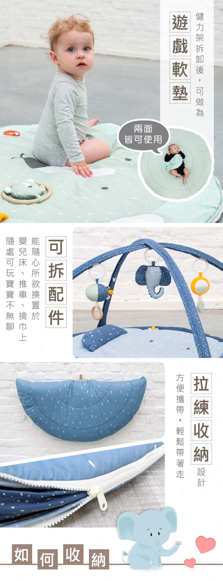 ● 健力架拆卸後,可做為遊戲軟墊,兩面皆可使用