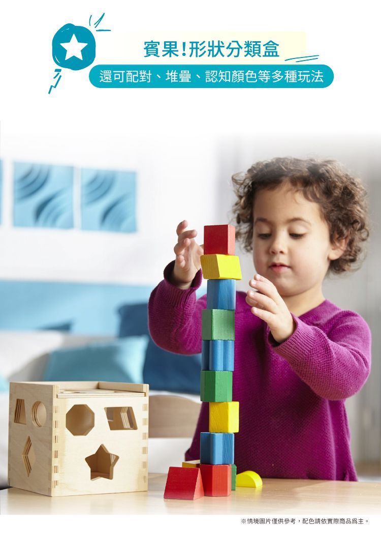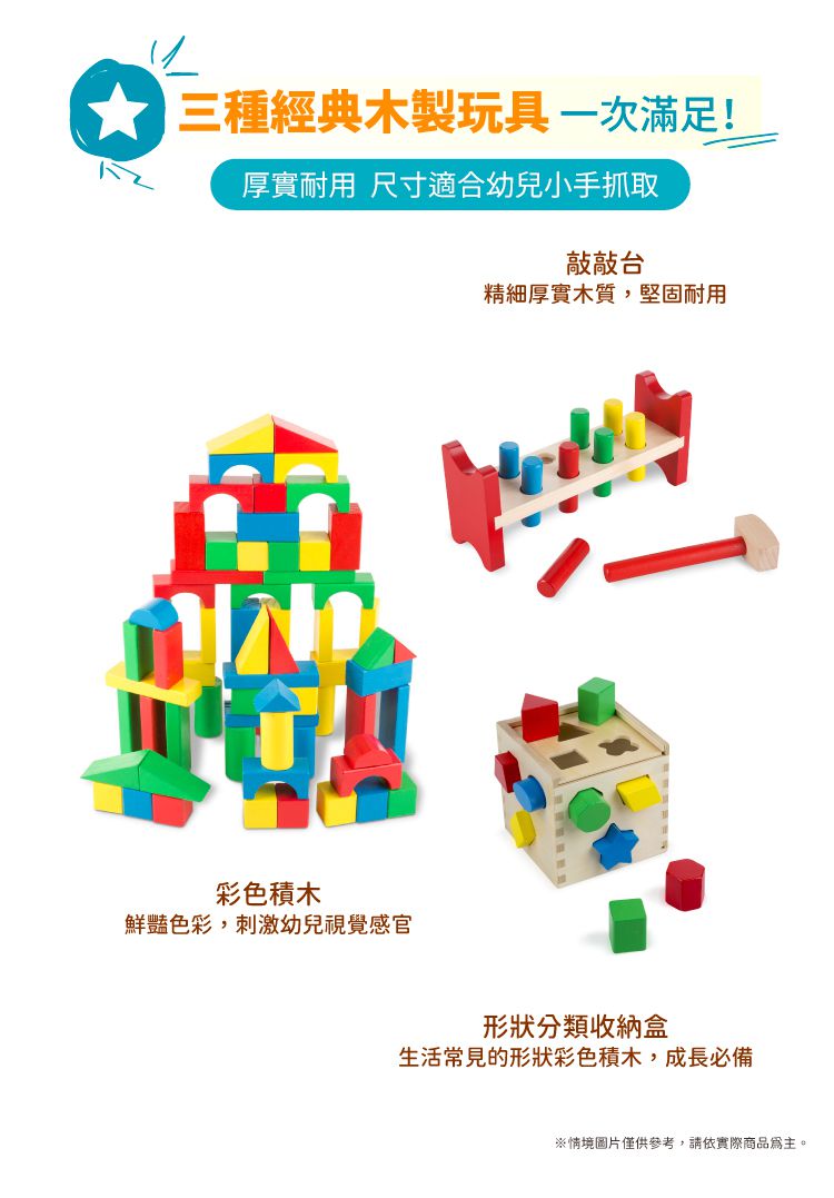 1.Melissa & Doug 的 3 款經典木製玩具系列:積木、形狀分類立方體和帶有木槌的敲擊凳