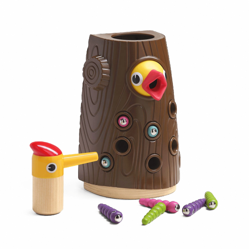 - 有了餵鳥玩具套裝,您的孩子就有機會成為鳥媽媽,用色彩繽紛的昆蟲餵養幼鳥。可愛的昆蟲隱藏在木樁中,木樁被幼兒手中的鳥頭吸引。