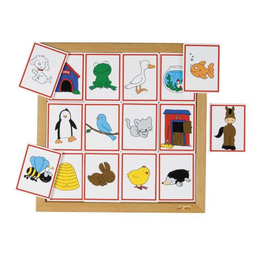 •孩子依照各個動物與動物住家進行配對遊戲,例如魚與魚缸。