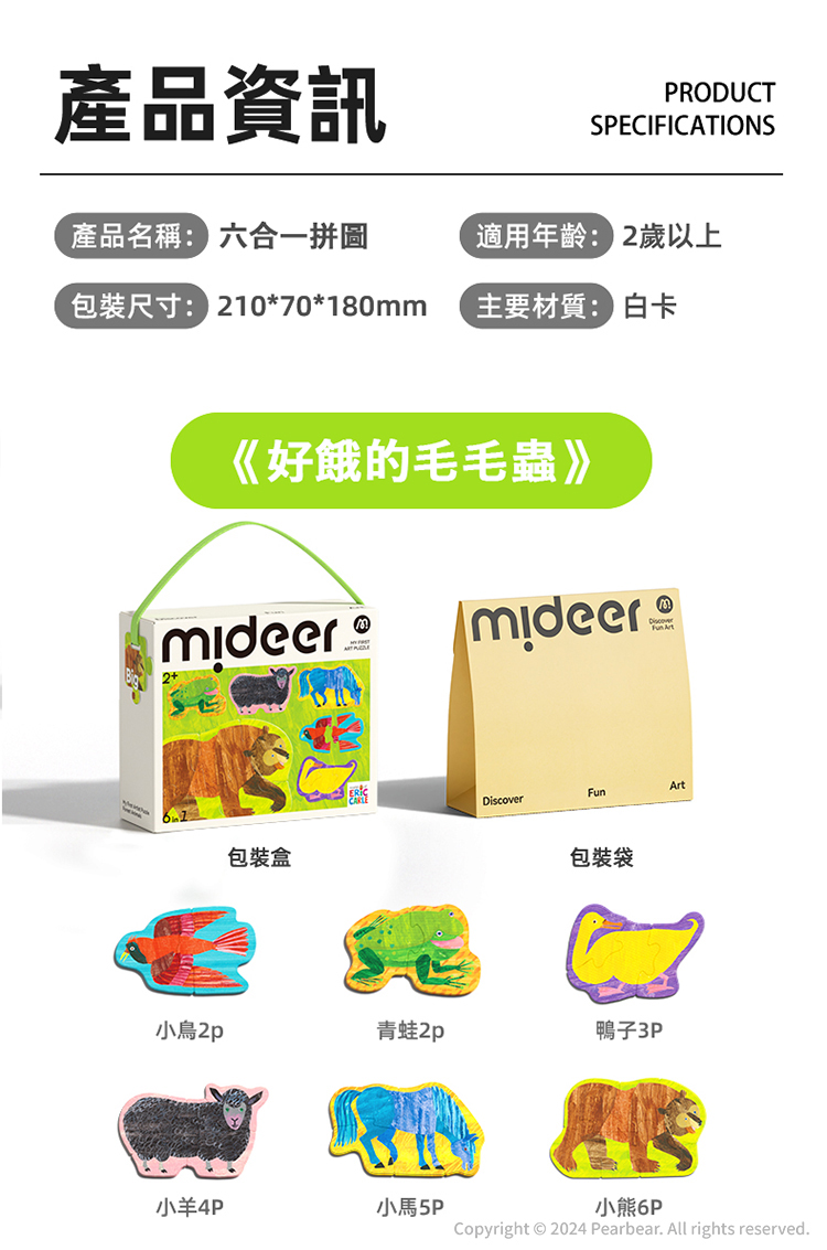 【MiDeer】六合一拼圖-好餓的毛毛蟲
