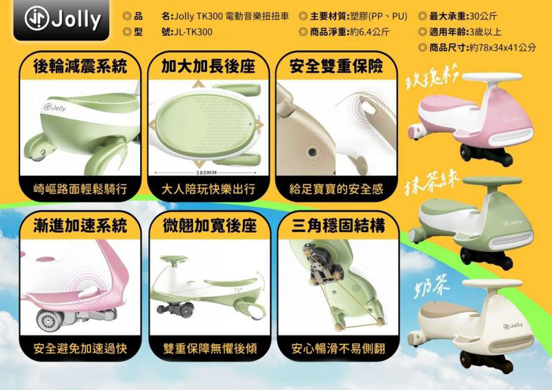 【英國 Jolly】TK300電動音樂扭扭車-玫瑰粉