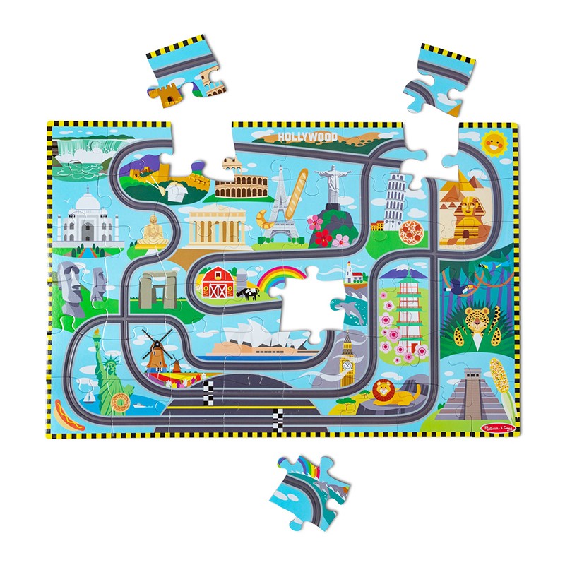 【美國 Melissa&Doug】瑪莉莎 地板拼圖-環遊世界賽道(48PCS)