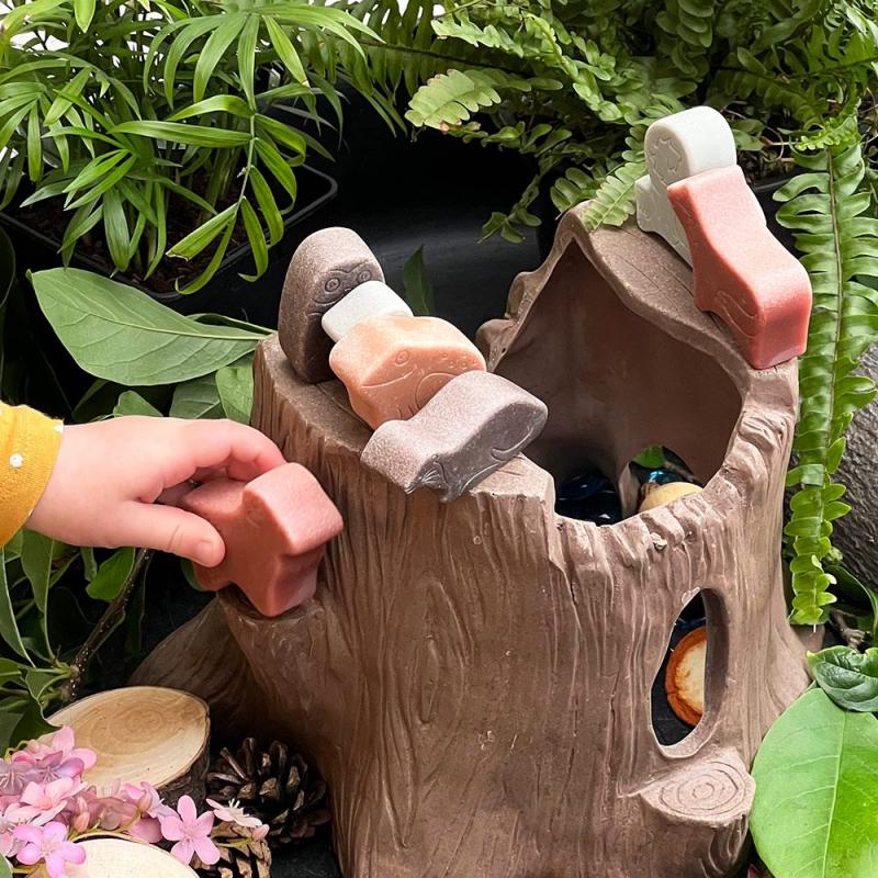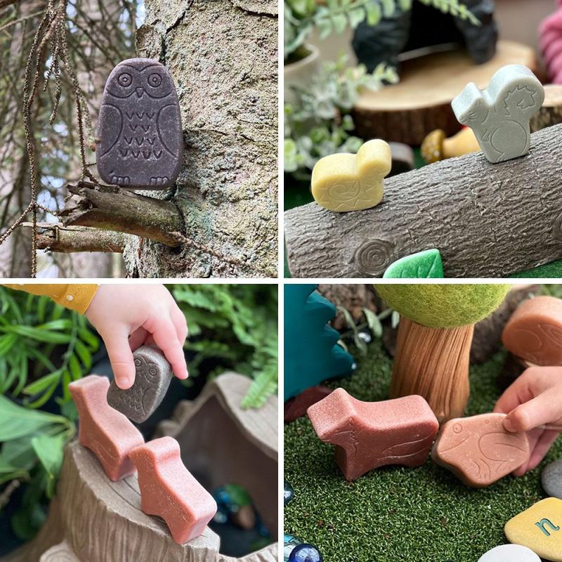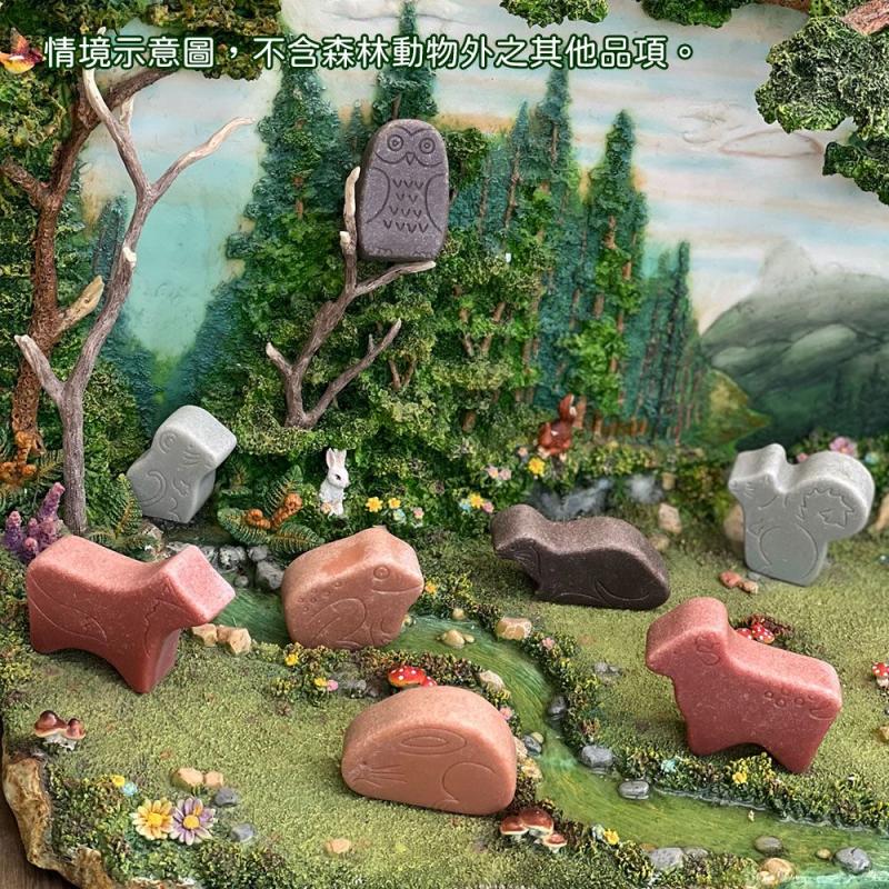 - 室內外皆可用的森林家家酒扮演系列!8種森林動物,搭配沙、水、泥巴、樹葉、黏土等自然素材一起玩,材質耐用易清洗。