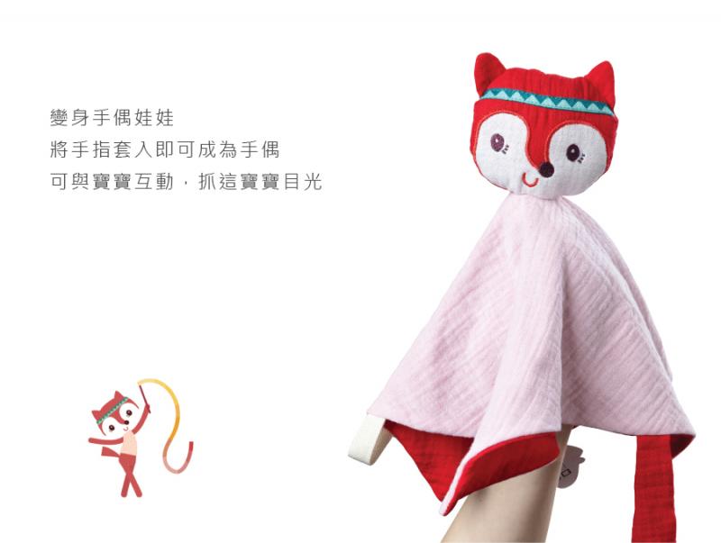 - 有機棉製成的安撫巾,一巾可多用,柔軟親膚,滿足寶寶安心感更好入睡,可愛的原創造型,一秒變身手偶,吸引寶寶注意,最棒的是能將奶嘴固定於安撫巾上,不會再為了找不到奶嘴而傷腦筋囉!