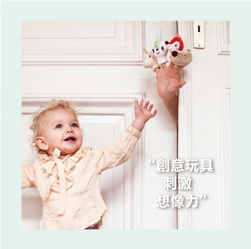 ● 將手指套入即可辯手偶,可與寶寶互動