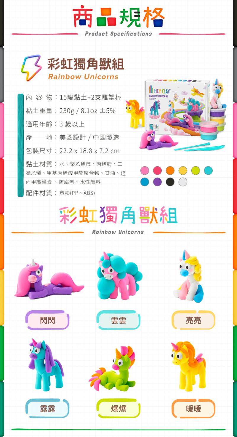 【美國 Hey Clay!】智塑輕黏土-彩虹獨角獸組(17件組)-Hey Clay
