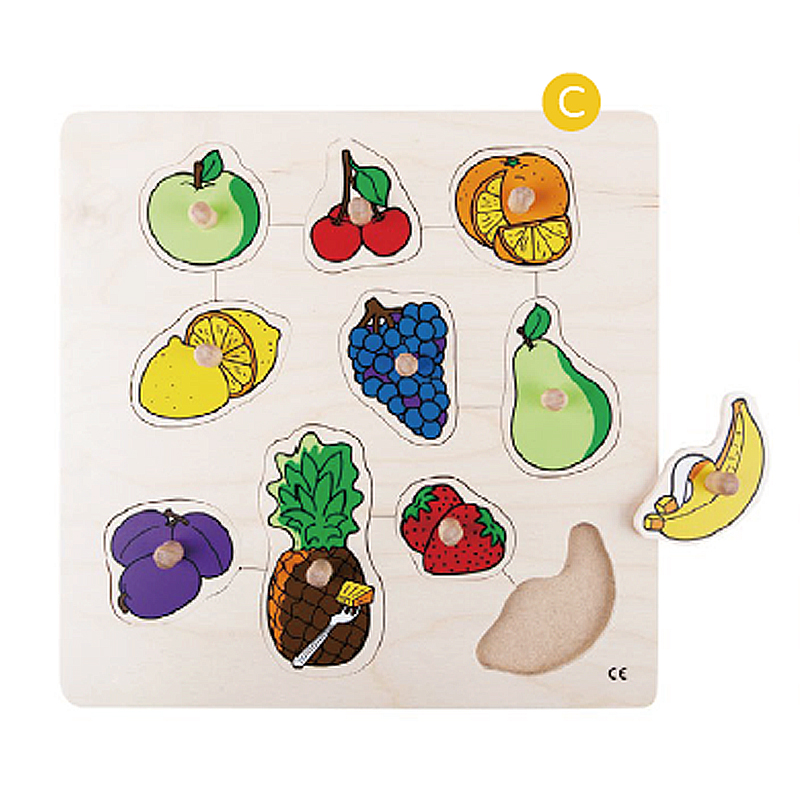 - 一組展示幼兒生活中常見事物的拼圖,每款上面都有抓手,非常適合2歲以上的幼兒遊戲。