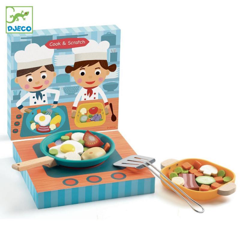 內容:1個平底鍋、1個盤子、1支鍋鏟、6個木製食材、28片食材配件