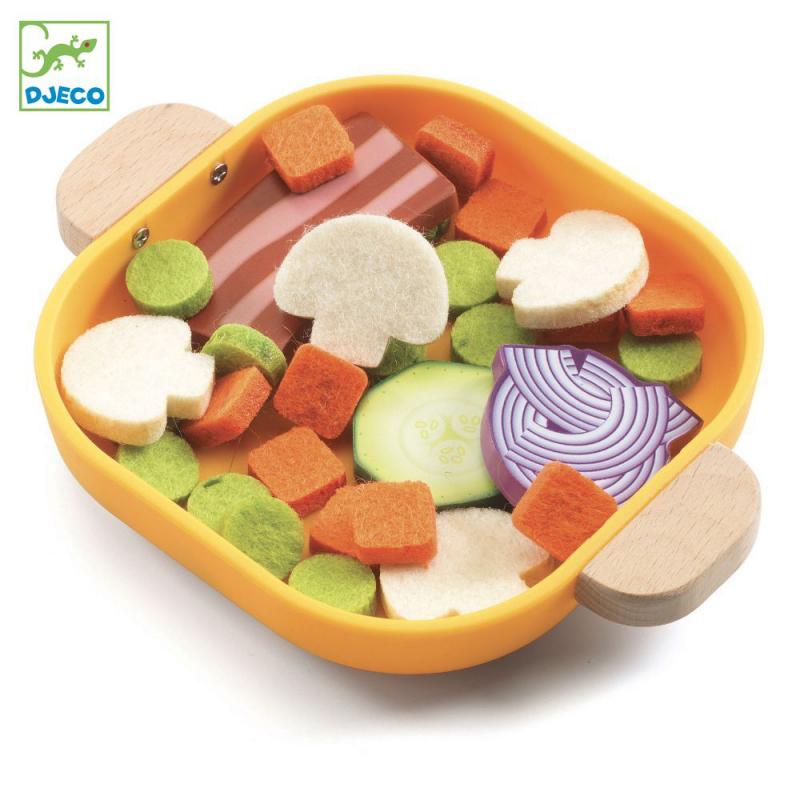 一款精緻的家家酒遊戲組合,一共包含37個配件,讓孩子自由選擇、發揮創意,煮出獨一無二的快炒料理,父母也可以陪孩子一起遊戲、學習,增進親子關係。