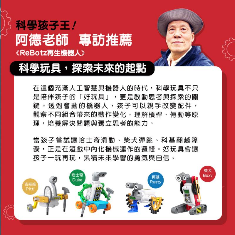 每一次的小改變,都是一次微型的實驗。陪孩子一起觀察、討論、推理,在遊戲中累積探索動力機械與作用力變化的經驗,激發科學好奇心與解決問題的能力。這不只是玩機器人,更是孩子接觸物理原理與創造力的起點!