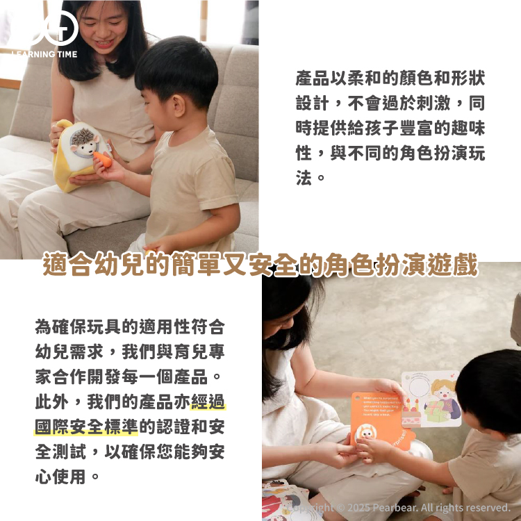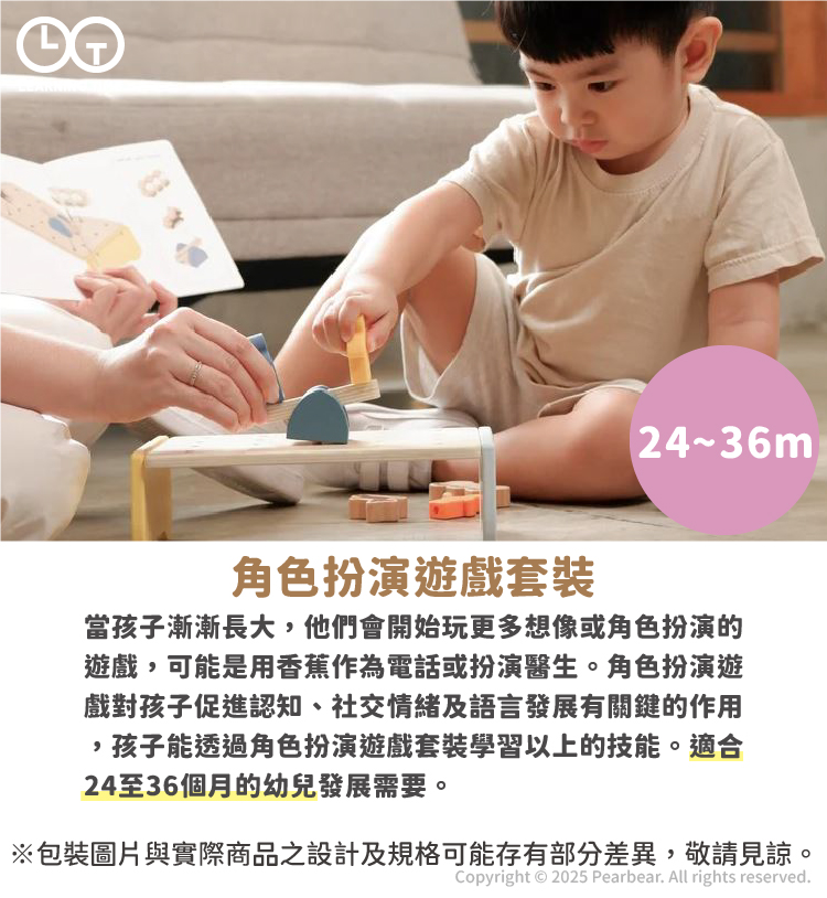 當孩子進入三歲階段,您會發現他們開始進行更多的假想遊戲或角色扮演活動,例如用香蕉假裝成電話,或是在家裡玩醫生遊戲。這些趣味十足的活動對孩子的成長至關重要,不僅能促進認知發展,還有助於提升社交情緒能力及語言表達能力。我們特別推出的角色扮演遊戲套裝,專為24個月以上的孩子設計,讓您的孩子能在遊戲中學習,並快樂地成長。透過這款套裝,孩子能掌握象徵思維能力,學會表達情緒並理解他人的感受,發展講故事與語言能力,同時探索創意並學習解決複雜問題的方法。讓您的孩子透過寓教於樂的方式,開啟無限可能的學習旅程!