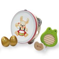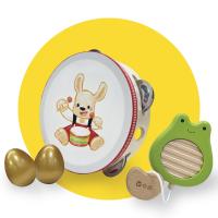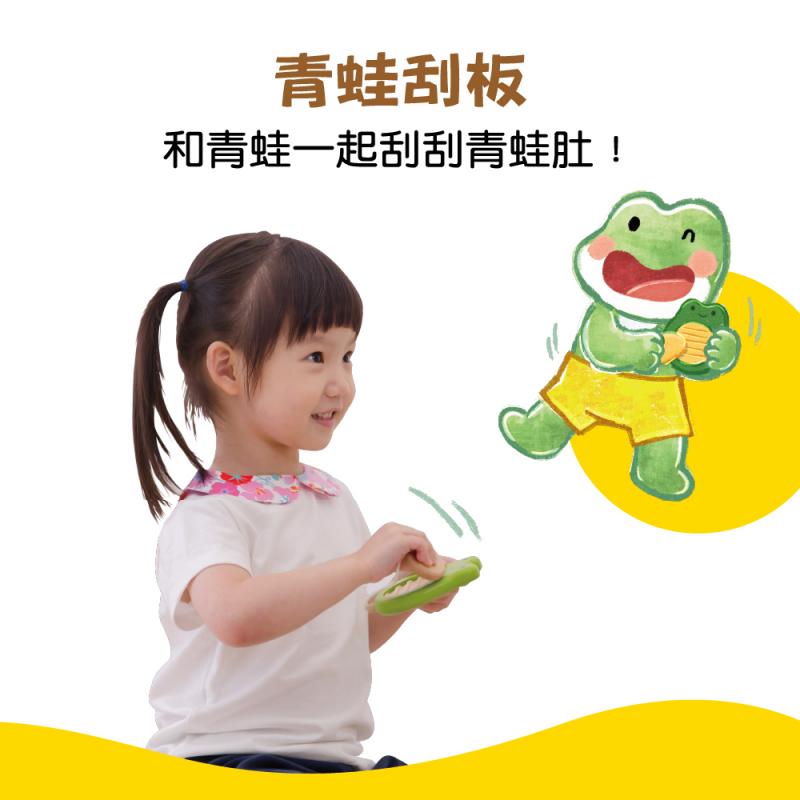 豆豆鈴鼓、阿呱刮板和雞蛋沙鈴是專為小小孩所設計的節奏樂器,好抓握、也容易操作。對孩子來說,只要搖一搖、敲一敲、刮一刮,就能發出美妙的樂音,這樣的過程既奇妙又充滿驚喜,會讓他沈浸在「製造音樂」的成就感與樂趣之中。雖然孩子一開始還無法準確掌握操作樂器與歌曲節奏的對應,但別忘了——玩得開心更重要!