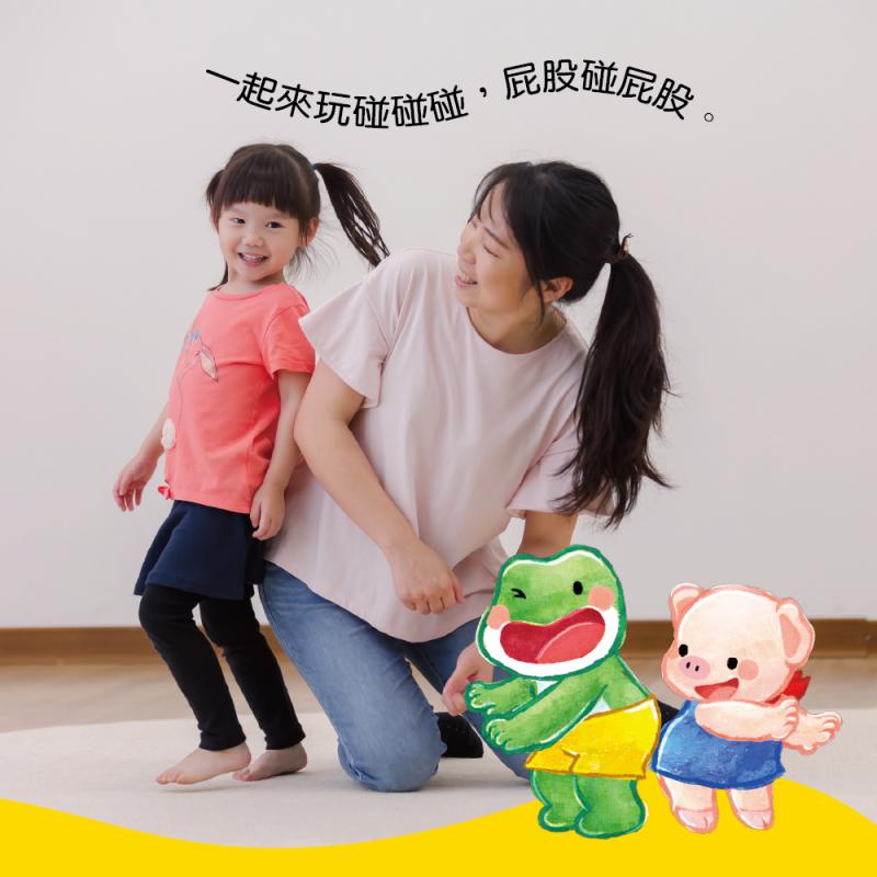 5. 碰碰碰:和同伴一起手牽手、頭碰頭、屁股碰碰。用音樂結合律動,體驗拍點與身體部位配合,促進身體意識。