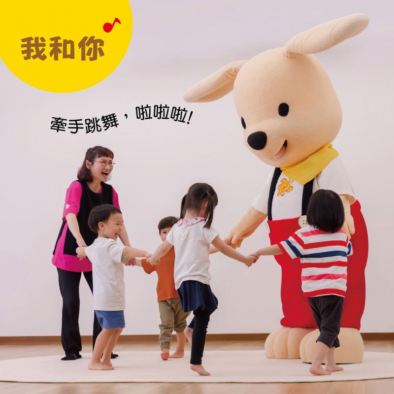 2. 我和你:跟著兒歌牽手、壓一壓、拉一拉,玩臉部互動遊戲,並透過「漸快」的速度變化,練習動作與音樂一致,並增進同伴互動。