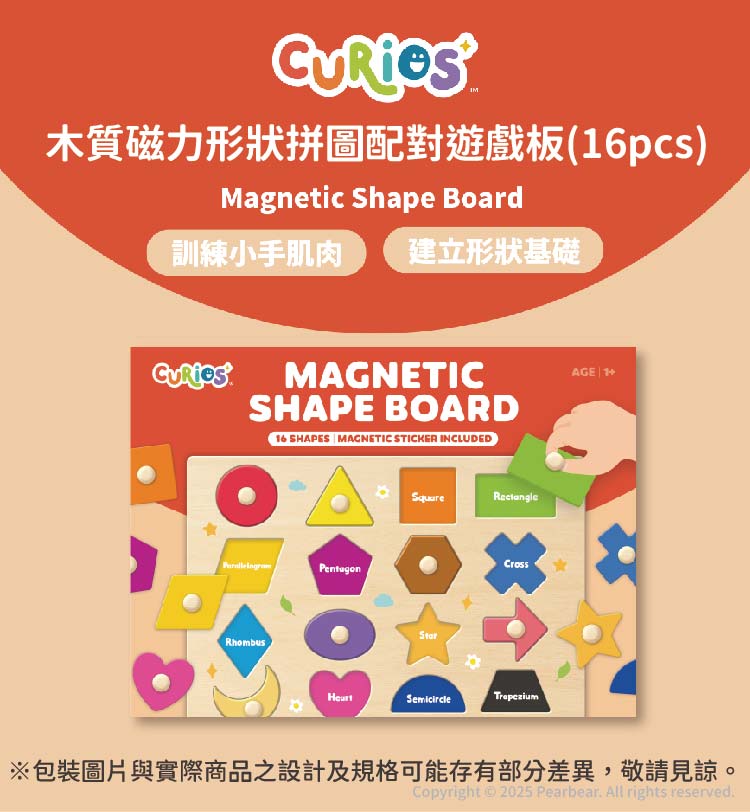 【香港 Curios】木質磁力形狀拼圖配對遊戲板(16pcs)