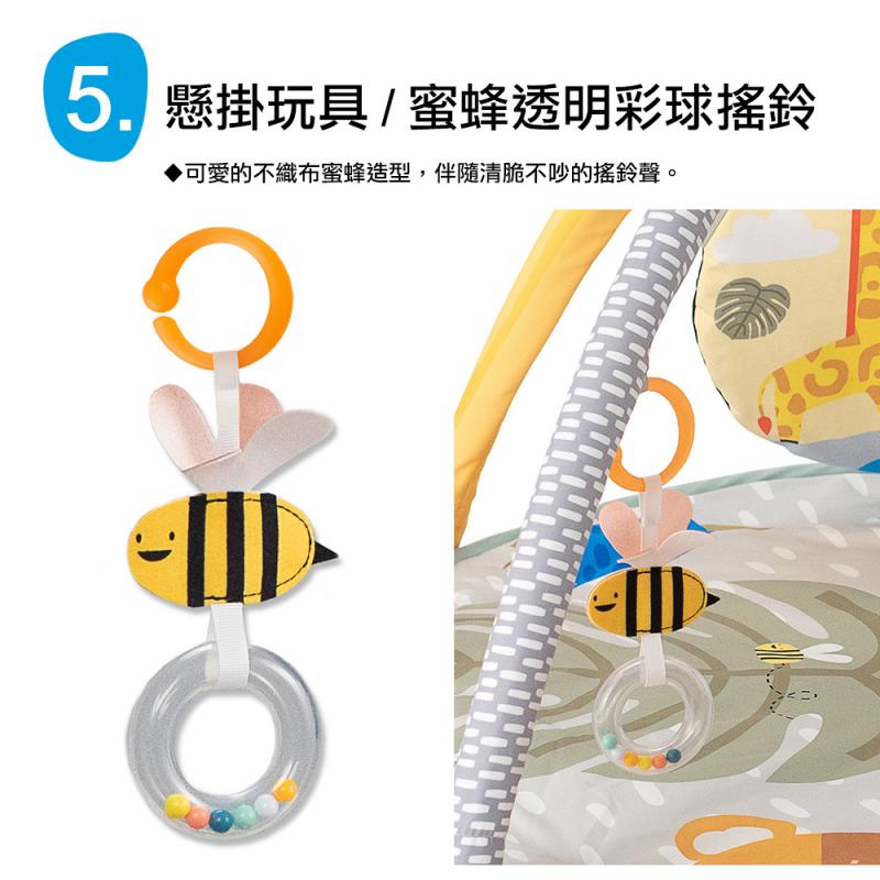 華麗的360度活動健力架,包含6種對寶寶感管發展所需要的小玩具。