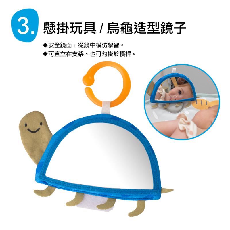 懸掛玩具-烏龜造型鏡子*1:使用安全鏡面,可立在支架或掛於衡桿